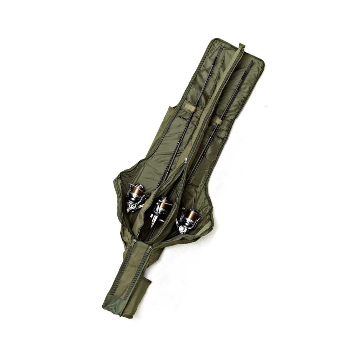 De NXG 3–Rod Padded Sleeve 10ft biedt uitstekende bescherming voor uw 10ft hengels, met 50mm startoog en big-pit molens. Gemaakt van 600D polyester in een subtiele olijfgroene kleur en versterkt met Nyplax materiaal voor meer stevigheid en is hij goed inwendig opgevuld om elke afzonderlijke hengel binnenin te beschermen. Hij heeft een gevoerde, verstelbare schouderriem om het dragen naar je visstek gemakkelijk en comfortabel te maken evenals een duplon handgreep welke een uitstekende grip biedt. Hij heeft twee vakken aan de buitenzijde, één is ideaal voor banksticks en de andere voor een schepnet over de hele lengte, daarnaast heeft hij nog een bevestigingsmogelijkheid voor brolly’s.