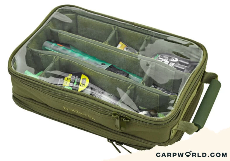 Houd end-tackle en rigs netjes op één plek met de NXG Tackle and Rig Pouch uit onze bekroonde NXG luggage serie. De NXG Tackle en Rig Pouch is voorzien van interne klittenband verdelers en kan hiermee op maat worden gemaakt om allerlei accessoires en gereedschap netjes op te bergen.Kant-en-klare rigs tot bijna 30cm kunnen worden opgeborgen op hetEVA rigboard van 30cm x 20cm lang.Doorzichtige panelen aan beide zijden stellen de gebruiker in staat om de inhoud in één oogopslag te bekijken alsmede een doorzichtig vak met ritssluiting onder het rigboard maakt verdere opslagmogelijkheden mogelijk.